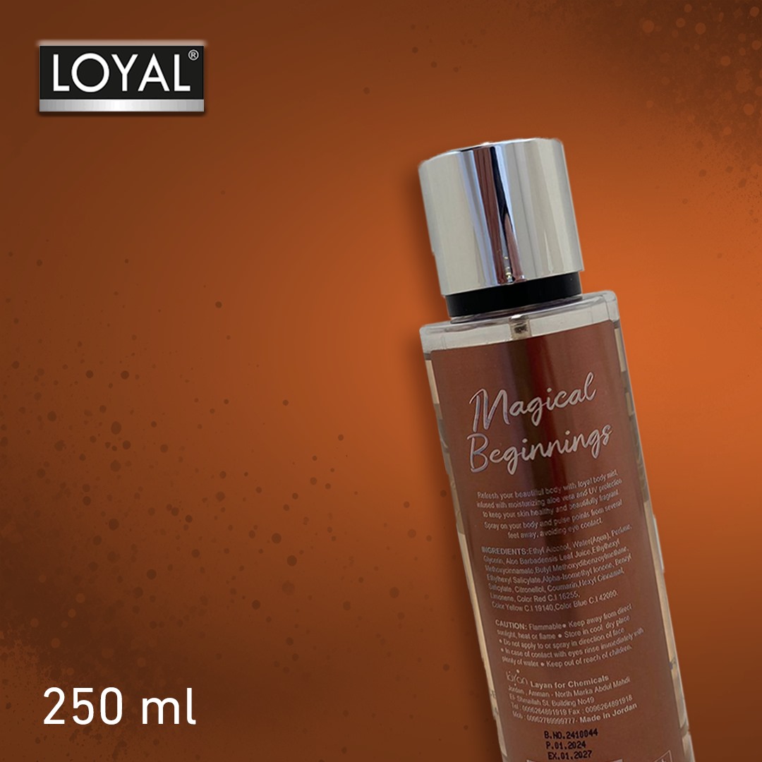 Start your day with the fresh, uplifting scent of Loyal’s Magical Beginnings body mist. This enchanting spray blends the bright notes of orange and raspberry with the soft floral essence of gardenia, finishing with the warmth of cashmere wood, musk, and vanilla, evoking the cozy feel of cashmere.